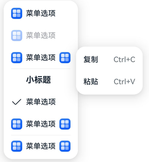 // 当builder参数进行配置时,表示与menuItem项绑定了子菜单。鼠标hover在该菜单项时,会显示子菜单。