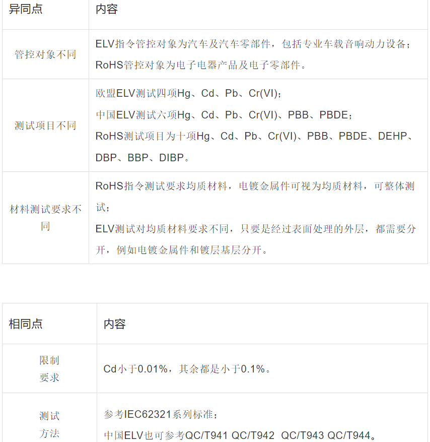 RoHS与ELV的比较
