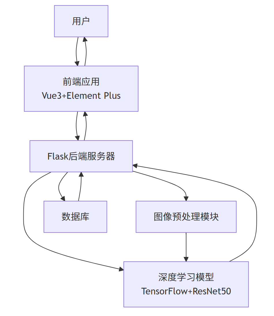 本项目是一个基于深度学习的花朵识别系统,帮助用户快速、准确地识别各类花朵品种。系统采用前后端分离架构,前端使用Vue3框架结合Element Plus组件库构建了直观美观的用户界面,支持图片上传、实时预览和识别结果展示等功能。后端采用Flask框架提供RESTful API服务,负责处理前端请求、图像预处理和模型推理等核心业务逻辑。