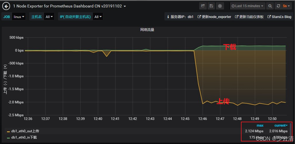 从监控图表可以看出,当前的网络流量已经基本将网络带宽占满,因此网络存在瓶颈。