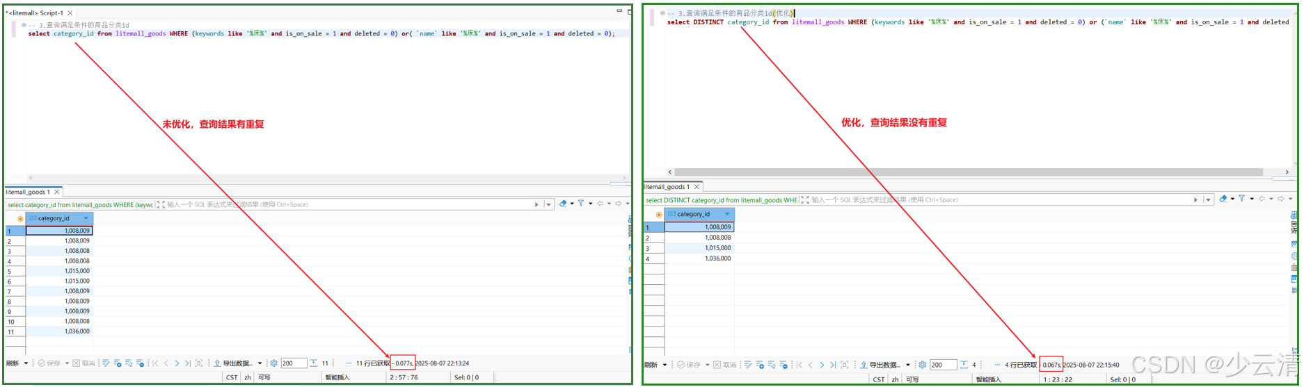 - 第4条SQL语句中的in查询条件中同样包含大量重复的商品分类id