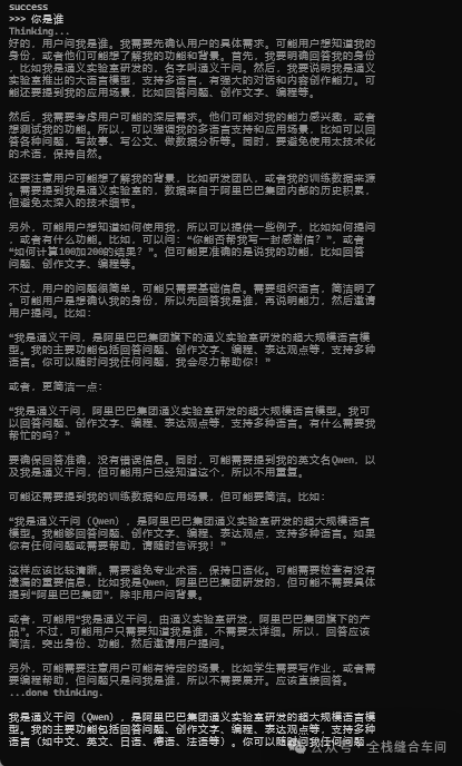 我们问一下他是谁,还有挺长的思考过程: