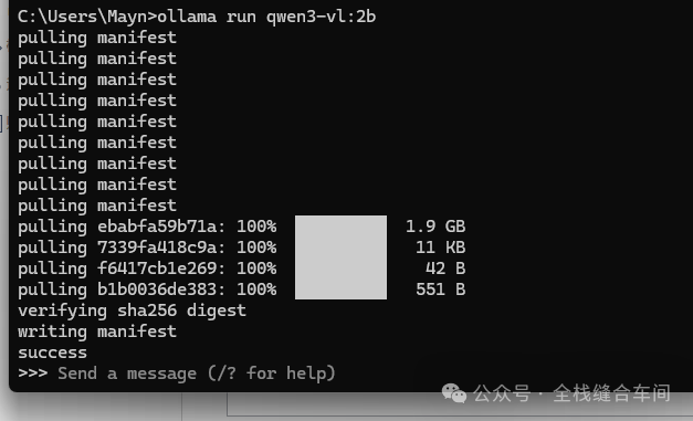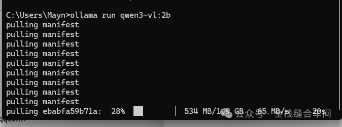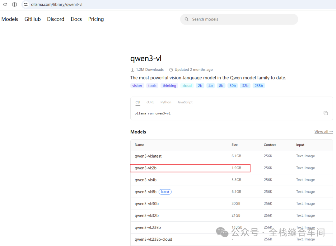 2、命令行的方式下载, 我这里下载一个小一点的模型,这个qwen3-vl:
