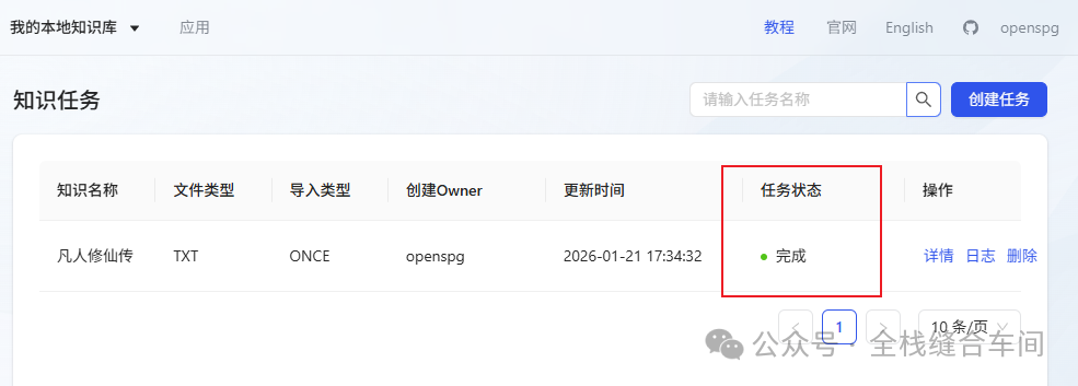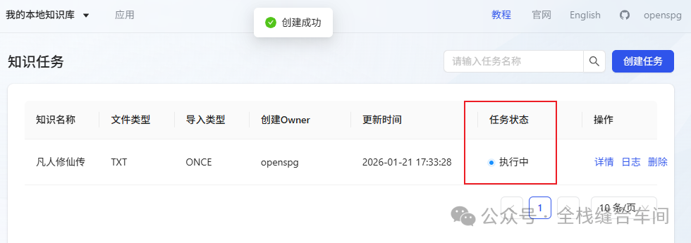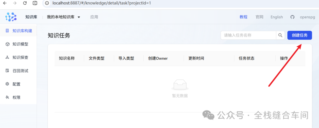 我们点击知识库进来,再点击创建任务: