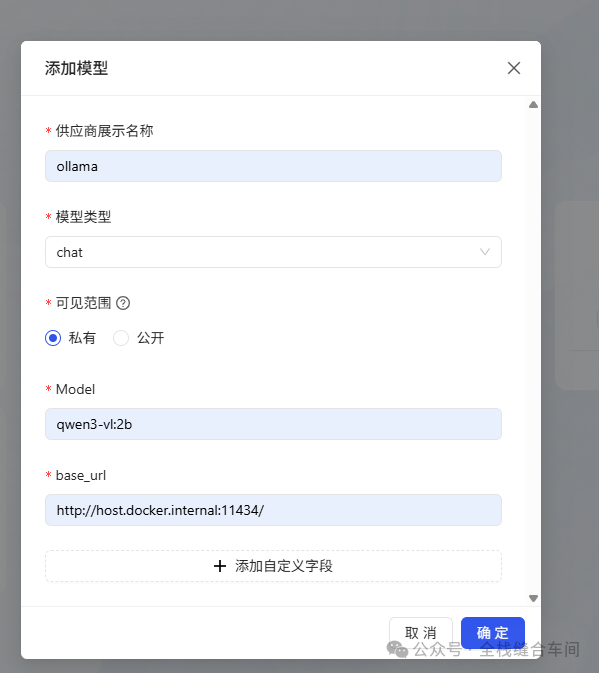 base_url为:http://host.docker.internal:11434/ 点击确定。