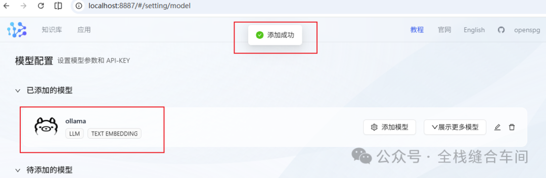 文本模型添加好后,我们继续添加向量模型: