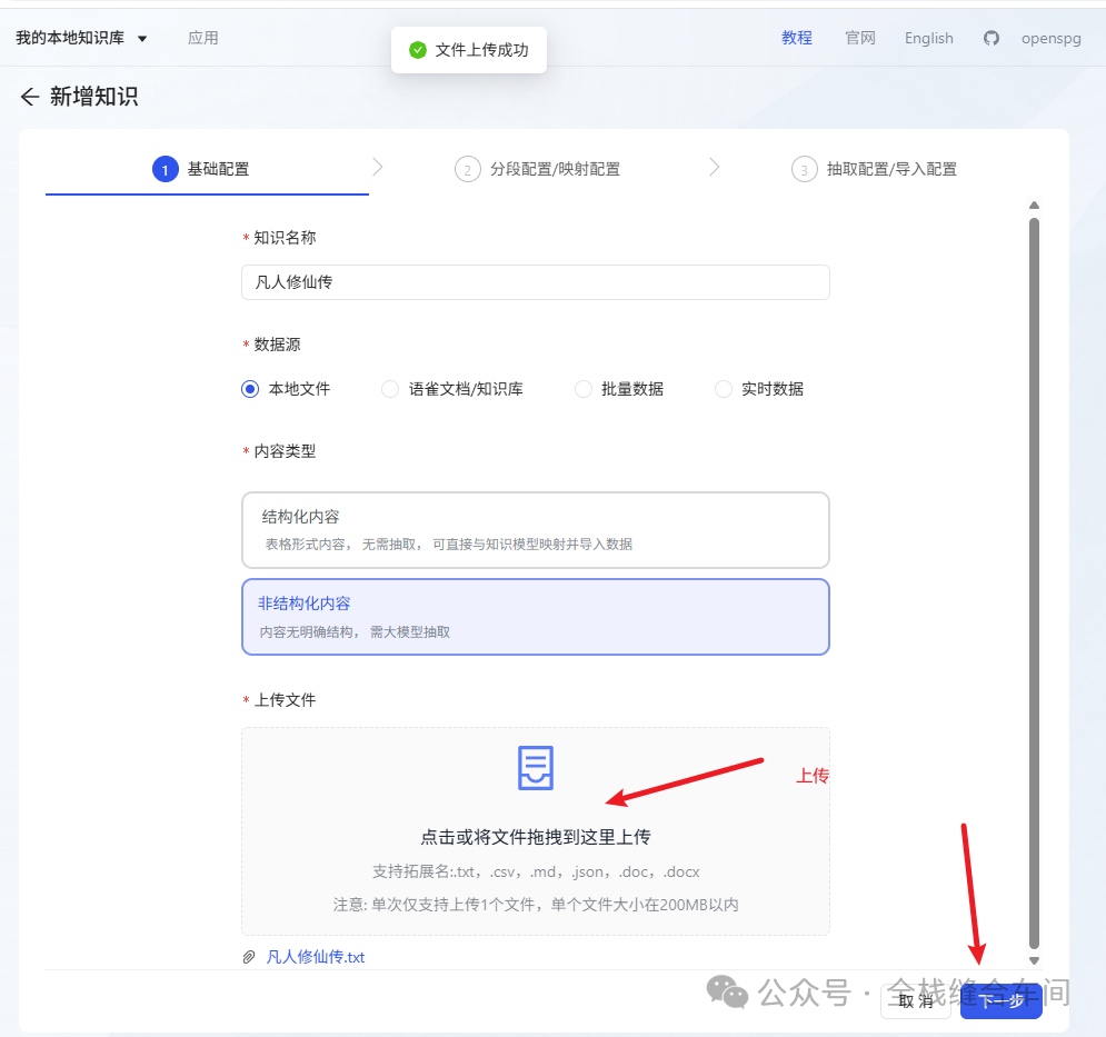 上传成功后,点击下一步: