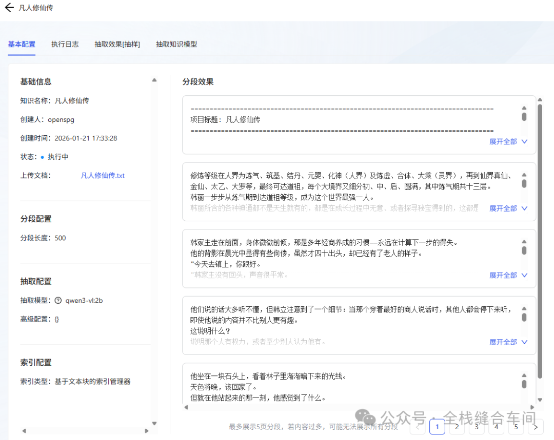 等待执行完成,就是解析文本并向量化的过程: