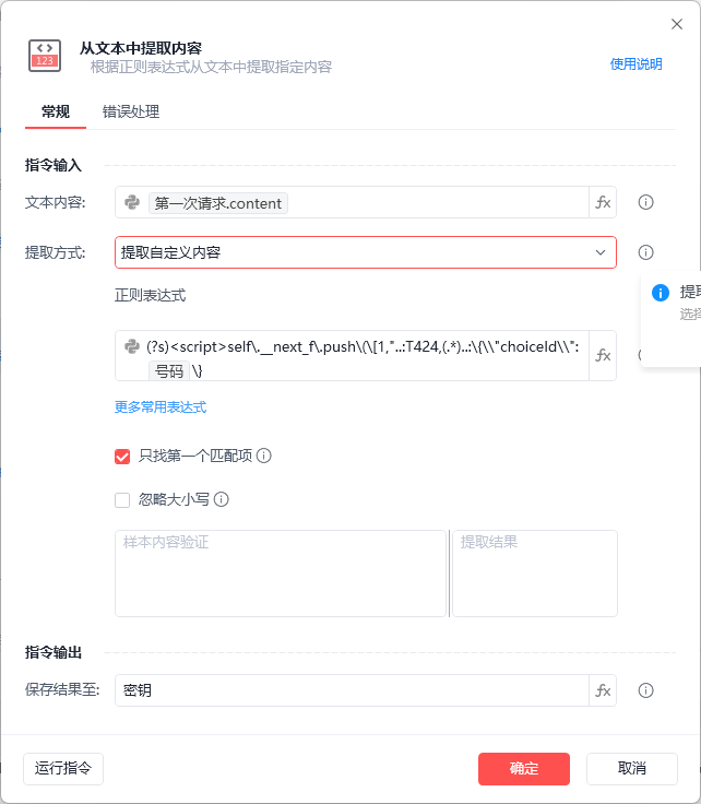 3、对请求的结果进行正则文本提取,取到我们想要的密钥