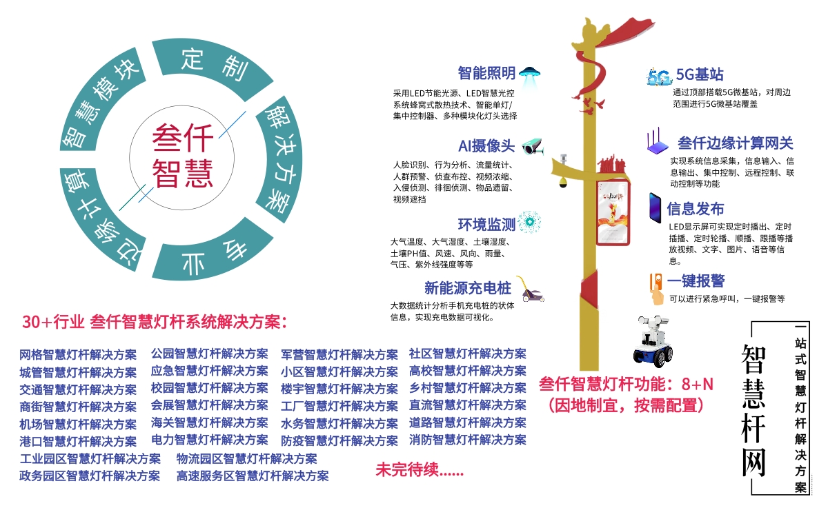 未来,叁仟将持续深耕5G多功能智能杆领域,深化技术研发与场景融合,推动5G、物联网、人工智能等前沿技术与杆体功能的深度结合,完善全场景解决方案,为政府、企业提供更优质、更智能、更高效的产品与服务。让叁仟5G多功能智能杆,成为每一座城市的"智慧标识",串联起数字生活的无限可能,照亮智慧城市的前行之路,助力更多城市实现从"被动管理"到"主动感知"的跨越,迈入高效、便捷、绿色、智能的全新发展阶段!