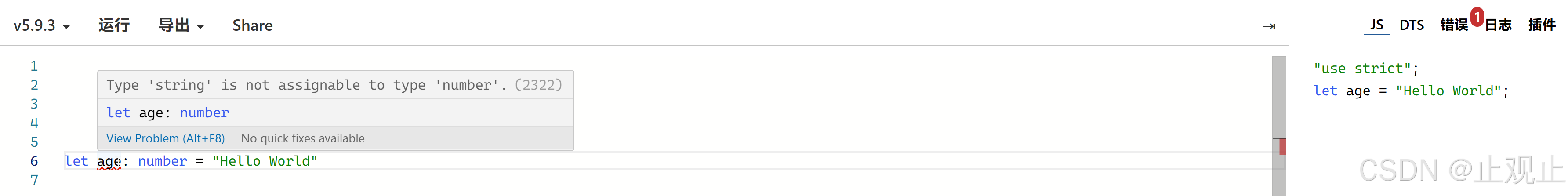 你可以随时访问 TypeScript Playground (版本选择 5.9) 跟随下面的代码进行实验。