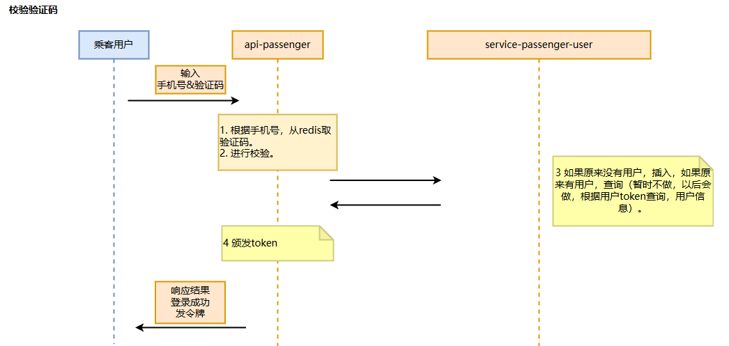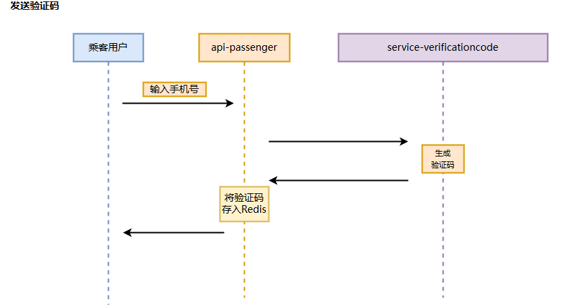 首先我们需要开发用户注册和登录功能,其中重点是乘客发送验证码,以下是发送验证码的时序图