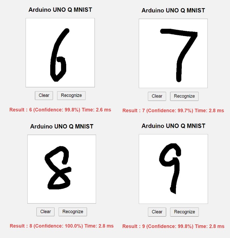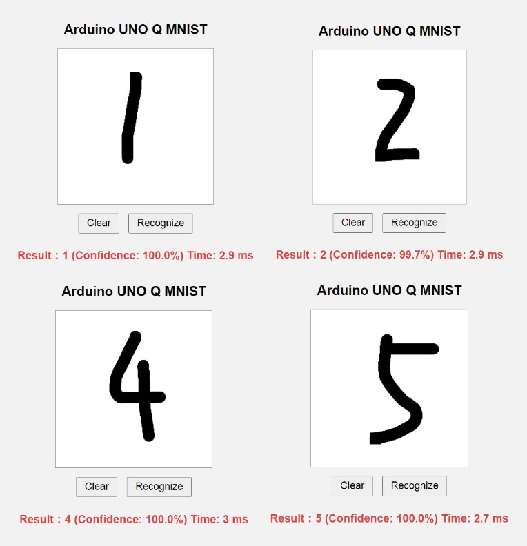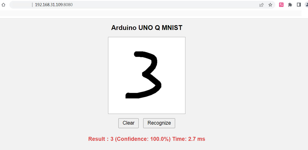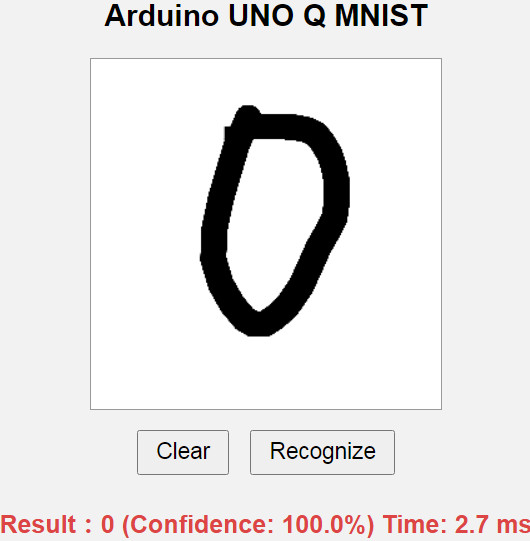 Arduino UNO Q 开发板结合 OpenCV 与 MNIST 数据集实现手写数字识别。