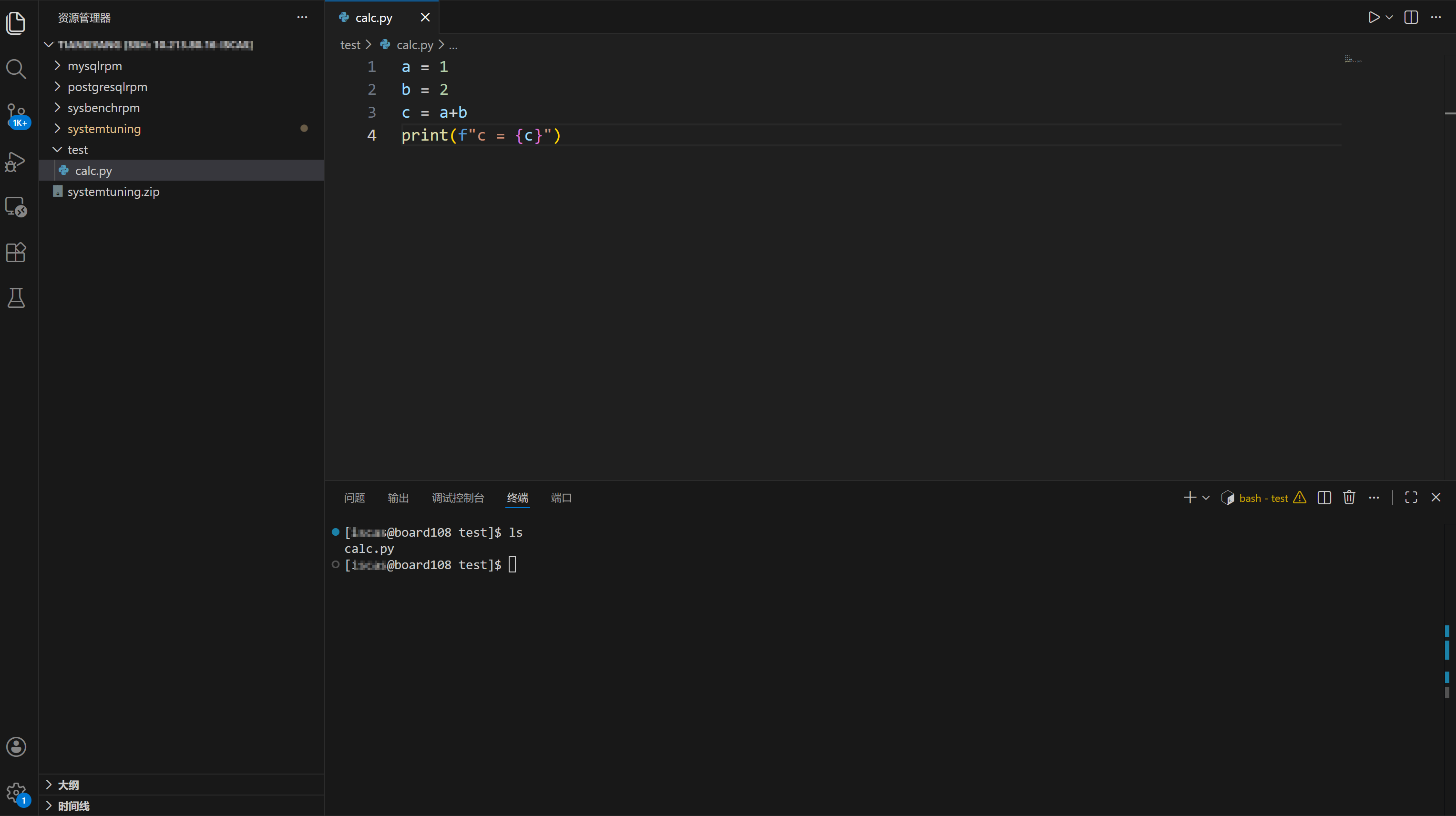 1.我在test目录下新建了一个calc.py文件,用来后续调试