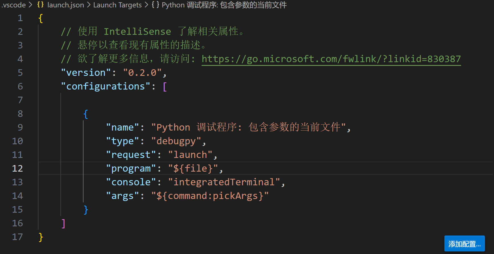 - 点击左侧调试按钮,再点击 创建一个launch.json 文件
