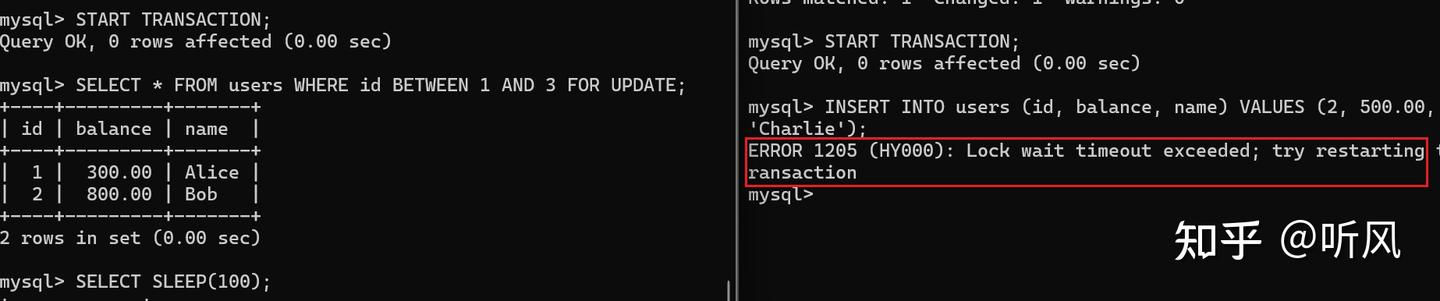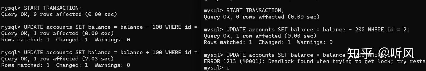 UPDATE accounts SET balance = balance + 100 WHERE id = 2; -- 尝试锁定账户2