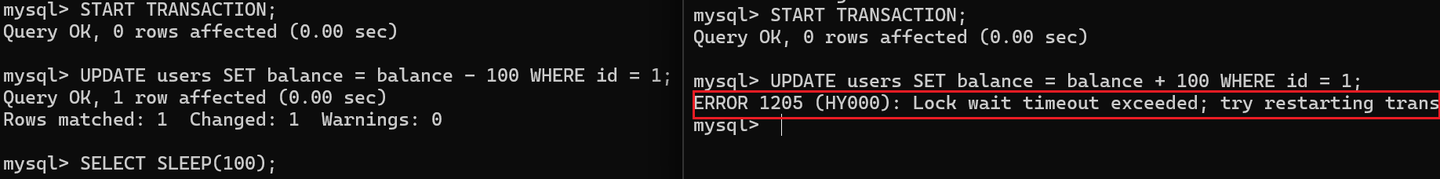 SELECT * FROM accounts WHERE id = 2 FOR UPDATE; -- 按固定顺序锁定
