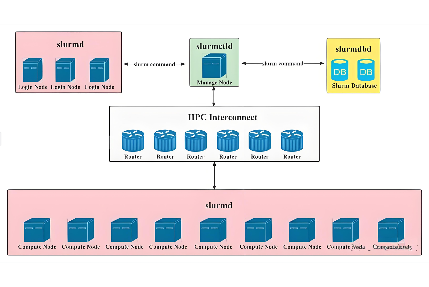 适用于大模型训练,需跨多个 GPU 节点,Slurm 自动分配节点并配置通信: