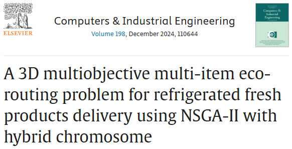 1\] Thakur K, Maity S, Nielsen P, et al. A 3D multiobjective multi-item eco-routing problem for refrigerated fresh products delivery using NSGA-II with hybrid chromosome\[J\]. Computers \& Industrial Engineering, 2024, 198: 110644. ### 6.代码获取 xx ### 7.算法辅导·应用定制·读者交流 xx