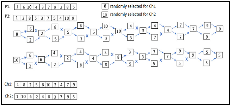 在NSGA-IIwDOs模型中,染色体编码了零售商的配送顺序,零售商编号从2到10,1代表仓库。配送计划从仓库出发,按顺序访问各零售商,最后返回仓库。每条路径有相应的车速和制冷速率,染色体的组成包括零售商顺序、路径选择、各路径的平均车速以及对应的制冷速率。初始种群通过随机生成解来创建,逐步形成配送路径,随机选择节点、路径、车速和制冷速率,确保每个解的唯一性。