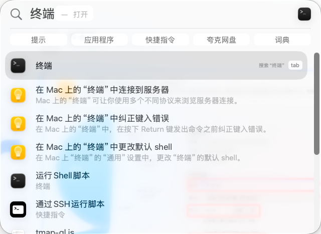 现在可以将下载好的安装器写到我们的U盘里面了,按下command+空格,搜索终端并回车