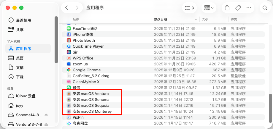 下载完成后,访达-应用程序里可以看到对应的安装器