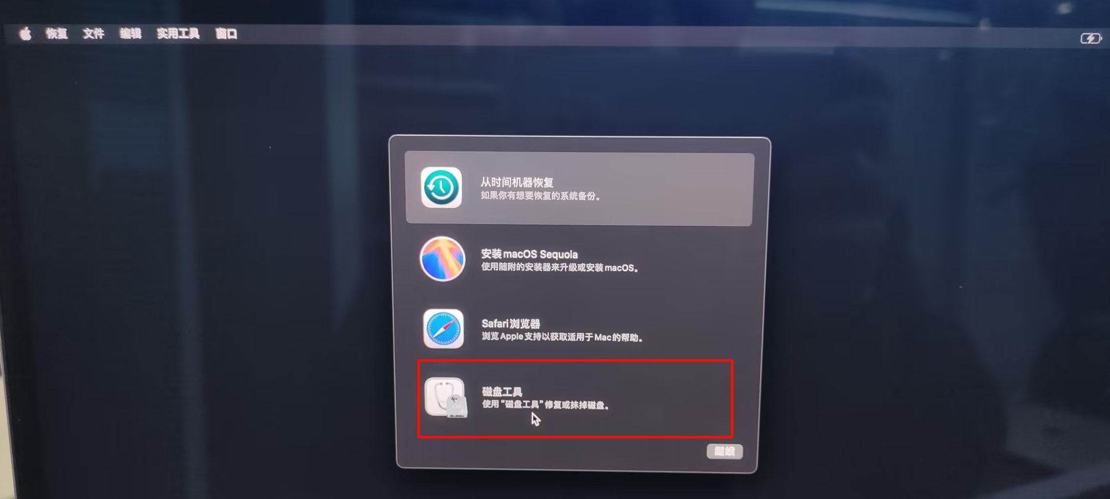 | M 系列(M1/M2/M3 等) | 关机插 U 盘,长按电源键至出现 "正在载入启动选项",选 U 盘点 "继续" | 在启动选项界面选 "选项",进入 macOS 实用工具 |