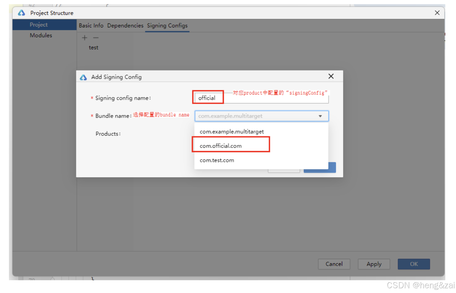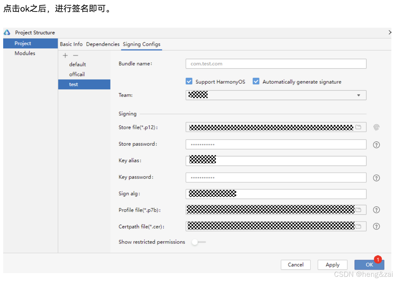 "signingConfig": "test", // 关联测试签名