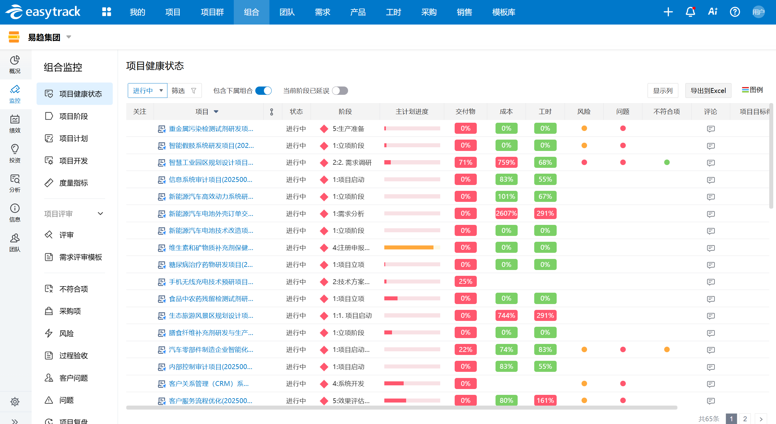 (易趋项目组合监控视图)
