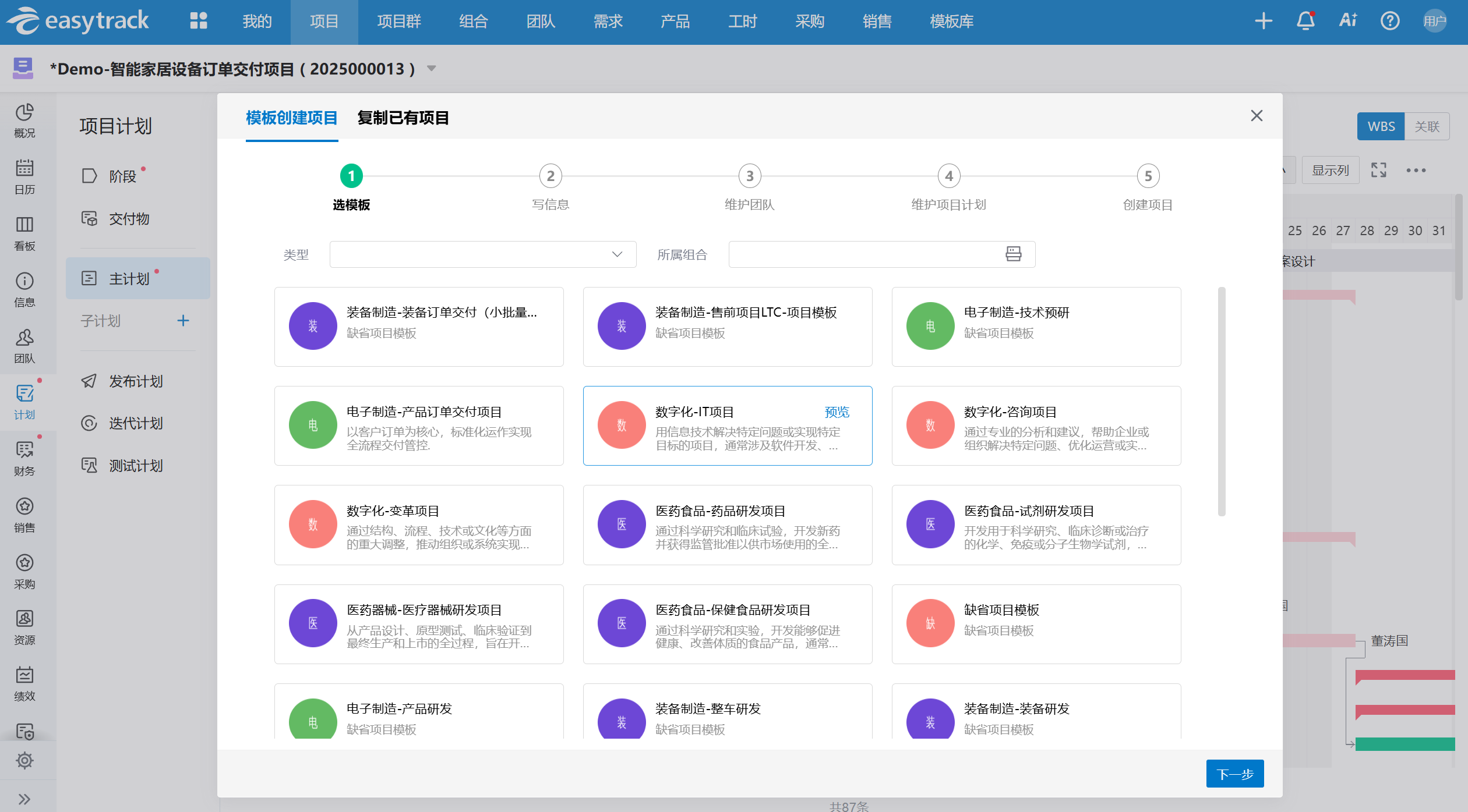 2)高效项目计划分解,支持模板复用
