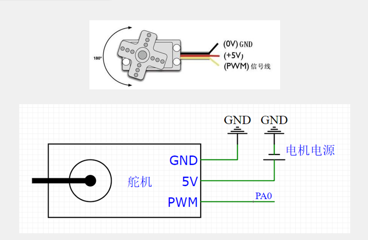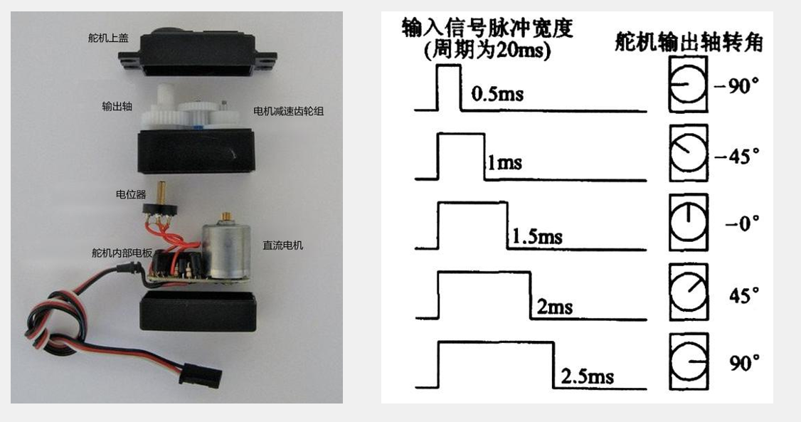 舵机内部能识别PWM的占空比,只需要输入相应的PWM就可以让它旋转指定角度。