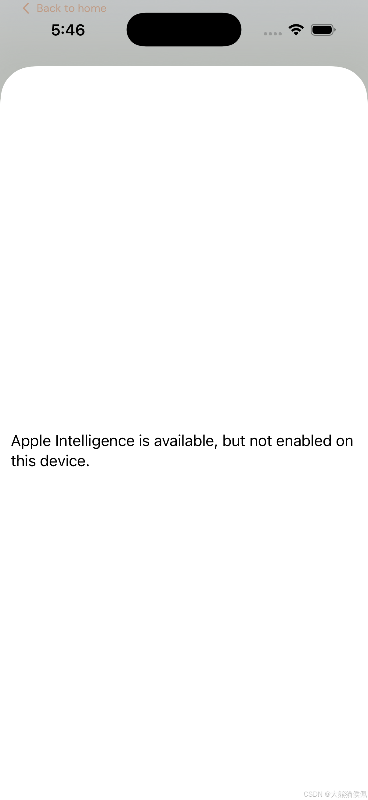 Text("⚠️ 你的设备太老了,跑不动 Apple Intelligence。")