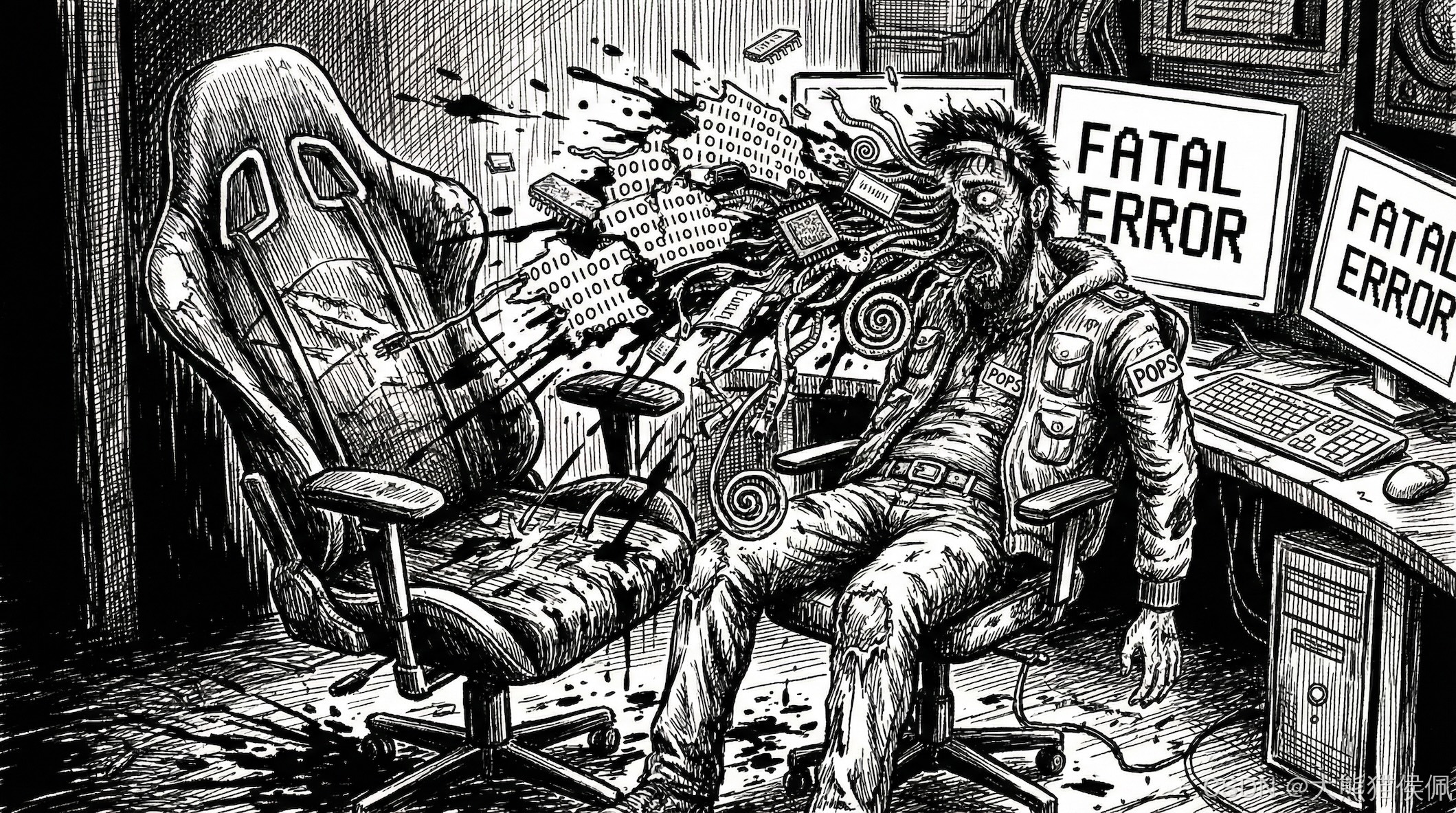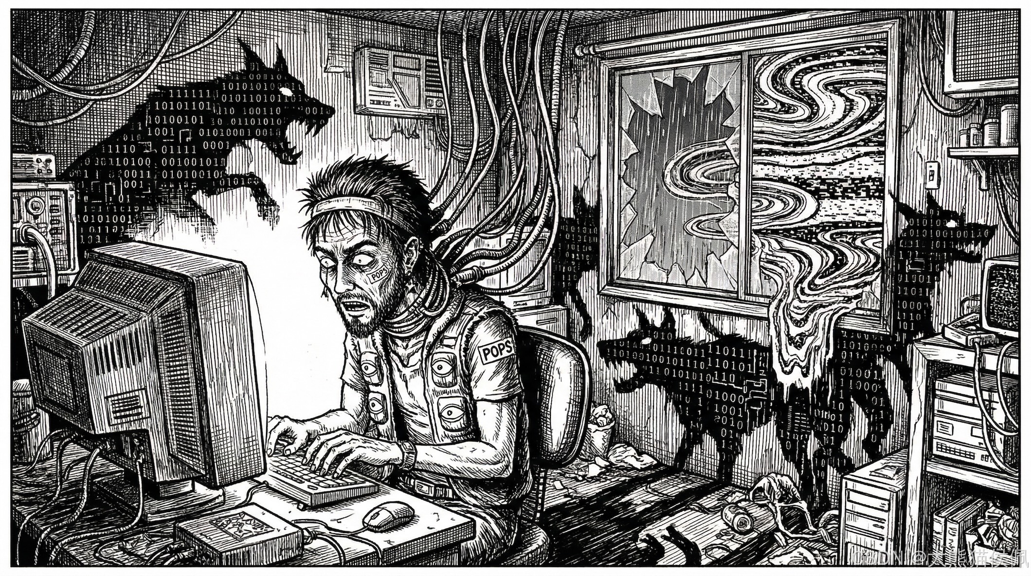 在贫民窟第 404 区的一间昏暗安全屋里,一名代号为"老 K"的黑客正对着一块发着幽蓝光芒的屏幕,手指在键盘上敲击出残影。墙角的服务器风扇发出濒死的哀鸣,仿佛随时都会起飞爆炸。