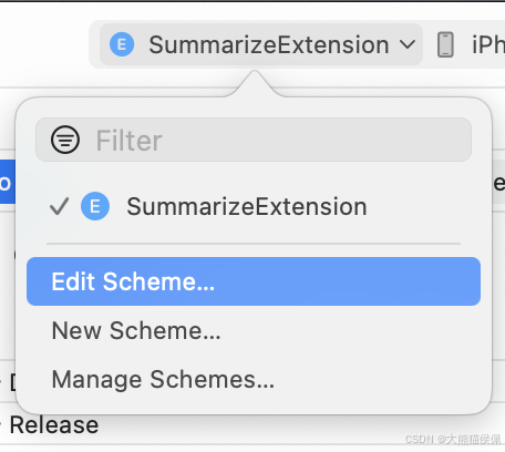 SummarizeExtension方案。 - 点击 Edit Scheme...。