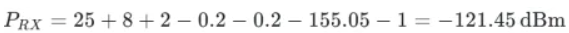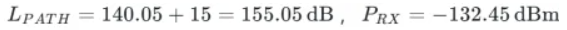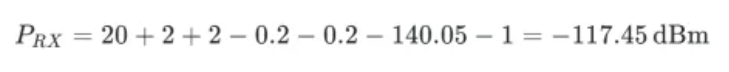 步骤2:代入链路预算公式计算接收功率: