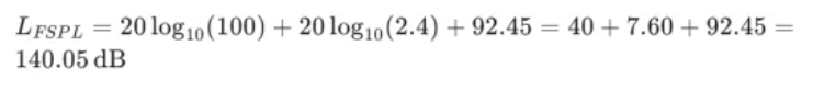 步骤1:计算FSPL(假设无遮挡,仅考虑自由空间损耗)。当收发距离d=100m时: