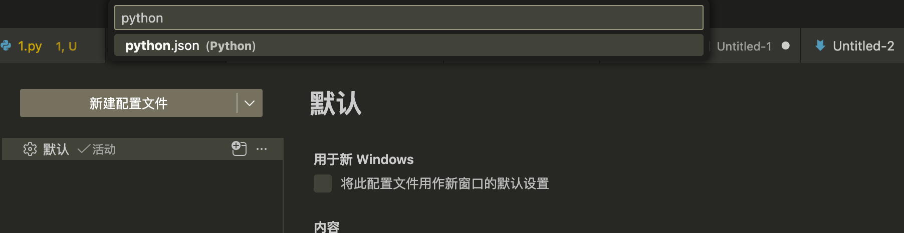 搜素python 打开python.json 配置文件