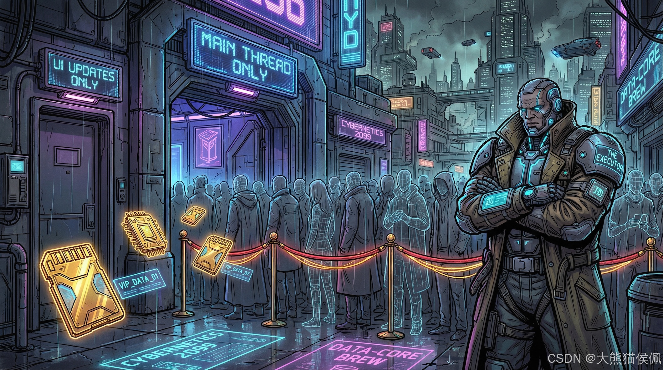 - 实现层:可能是锁 (Lock)、队列 (Queue),或者是专用的线程。