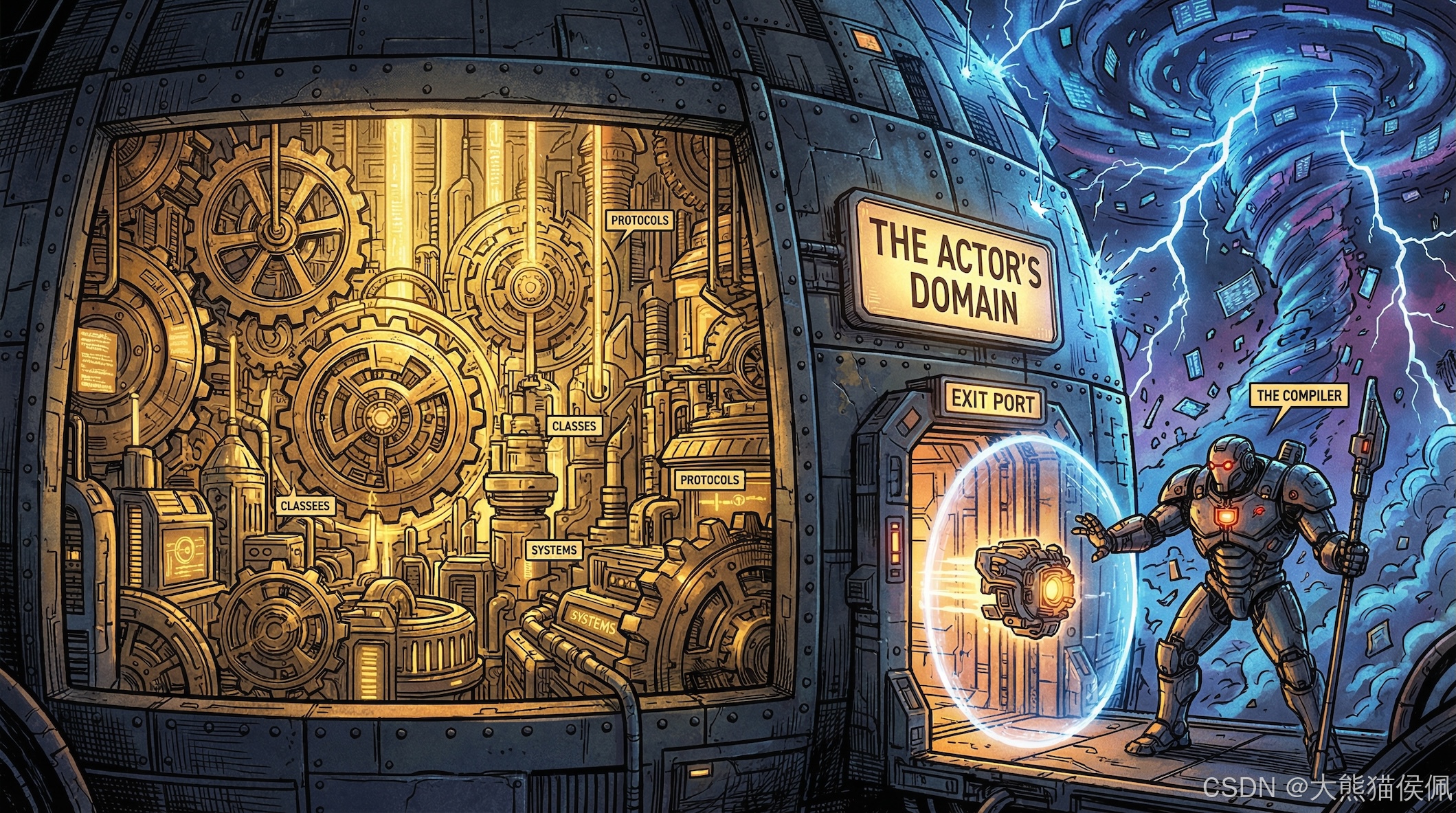 "很多人误以为 Actor 只是用来'后台运行'的工具,这完全是买椟还珠。Actor 的真正使命,是充当 Non-Sendable 数据的保镖,防止它们被竞态幽灵吞噬。"