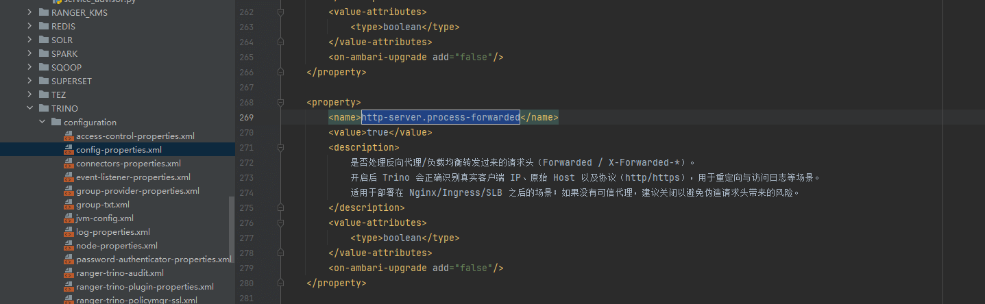 允许 Trino 处理来自反向代理(如 Knox)的 X-Forwarded-* 请求头