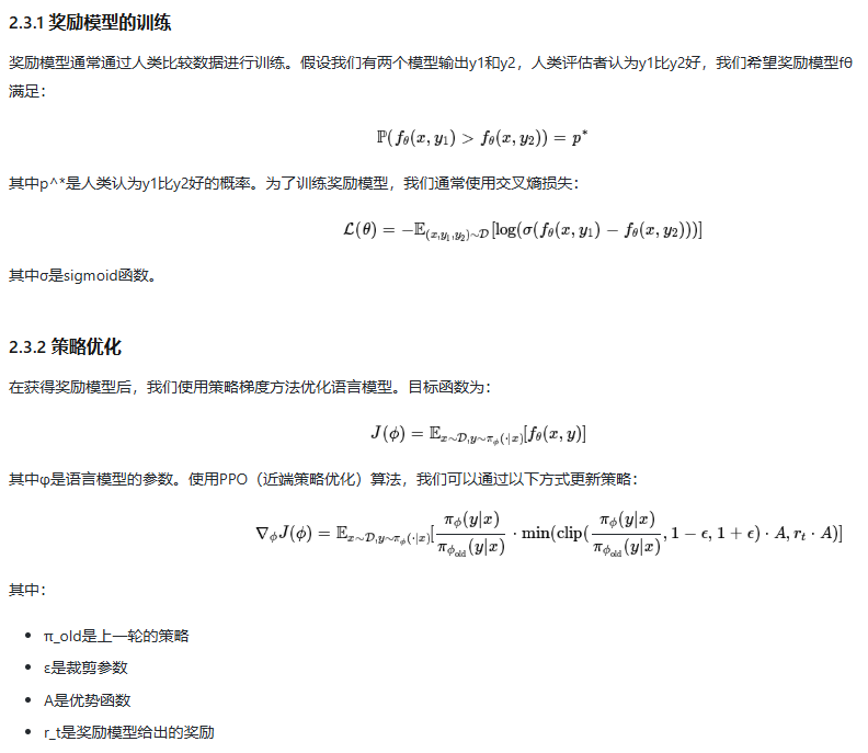 人类反馈强化学习(Reinforcement Learning from Human Feedback, RLHF),这是早期且效果显著的方法,被用于训练 InstructGPT 和 ChatGPT。它包含三个阶段: