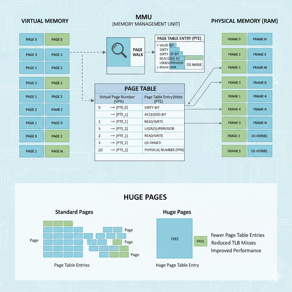 - 降低 CPU 开销:大幅减少操作系统页表(Page Table)的大小,从而减少 CPU 在虚拟地址到物理地址转换时的计算压力。