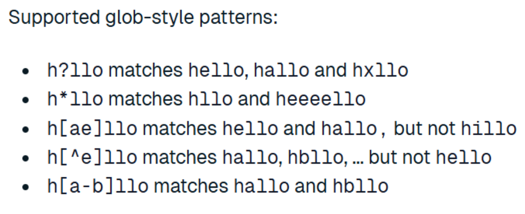 通过一些特殊符号(通配符)来描述key的模样 匹配上述模样的key就能被查询出来