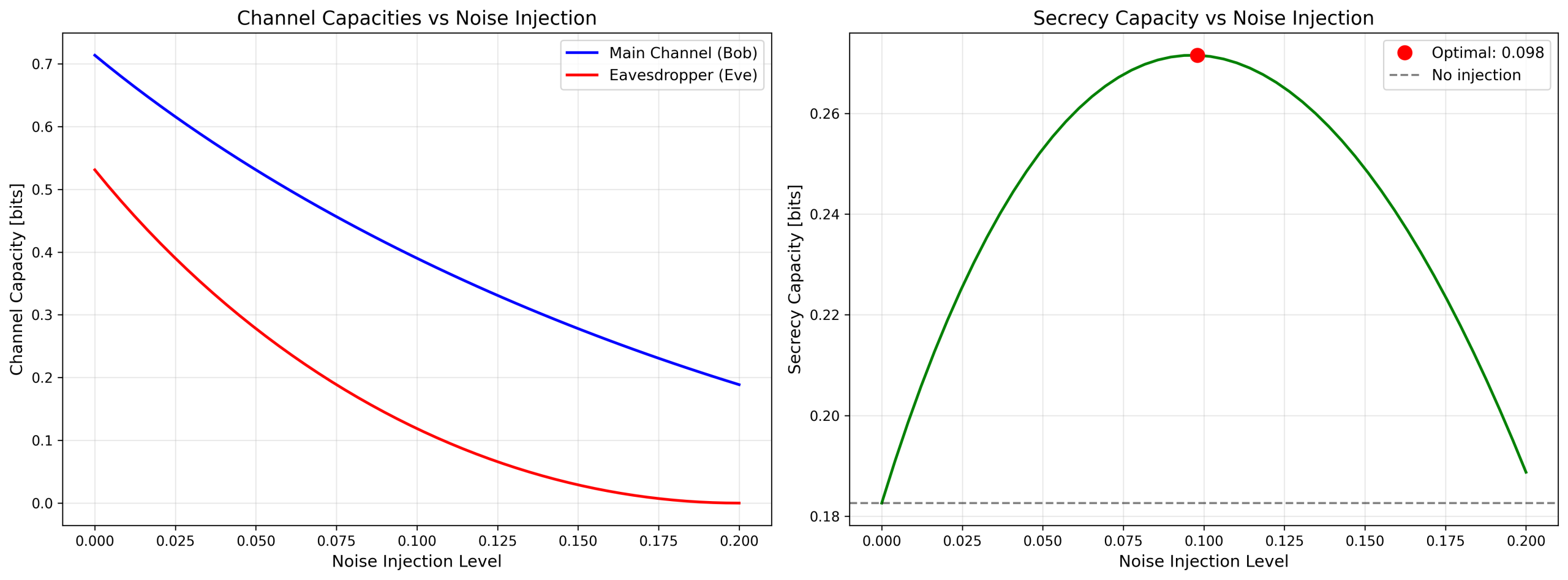 -- 适度噪声注入可显著降低窃听信道容量