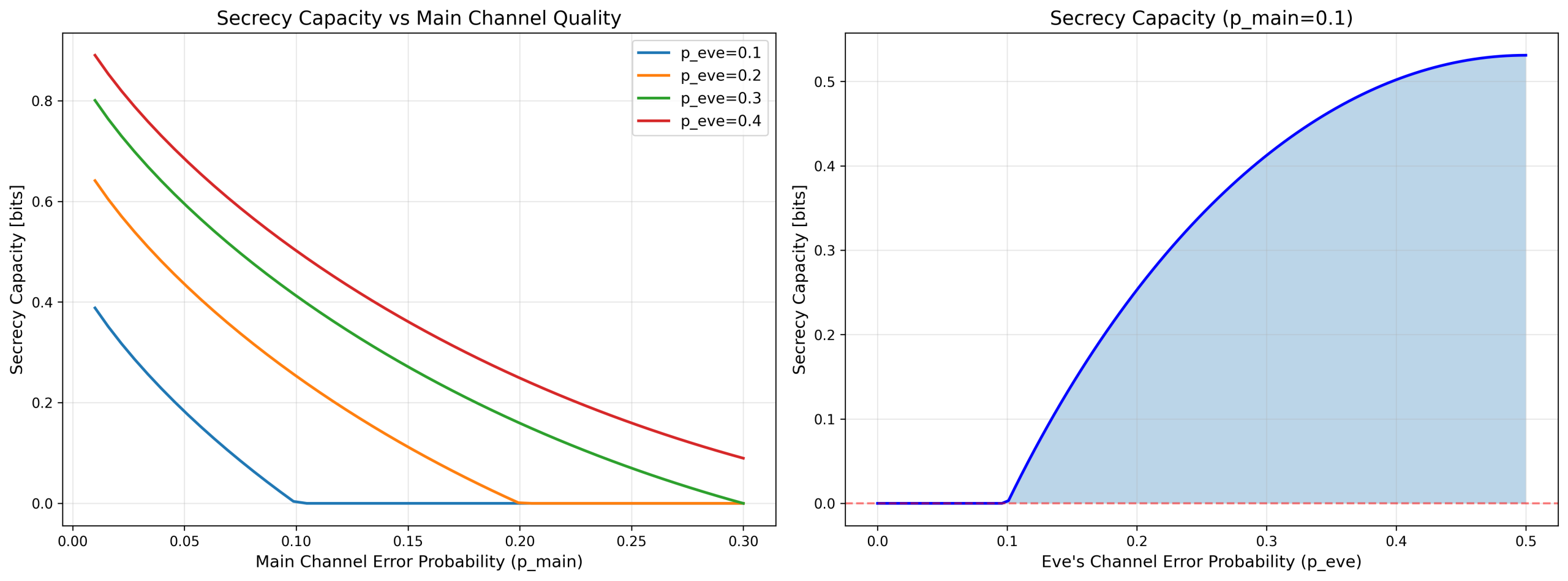说明:分析窃听信道模型中的保密容量,研究主信道质量和窃听信道质量对安全通信能力的影响。