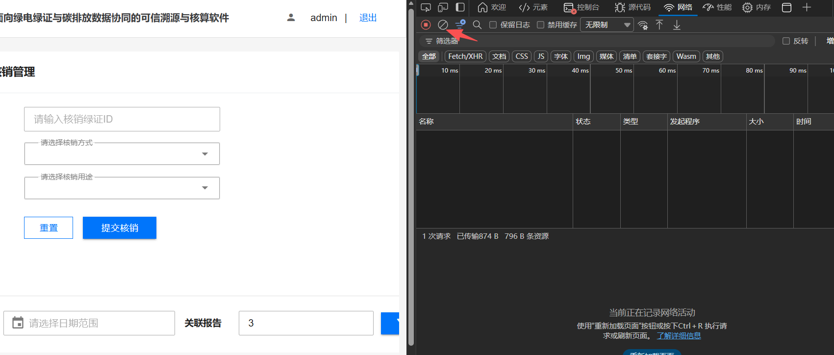 进入要进行性能测试的场景F12,调出开发者工具,点击网络,首先清除网络日志