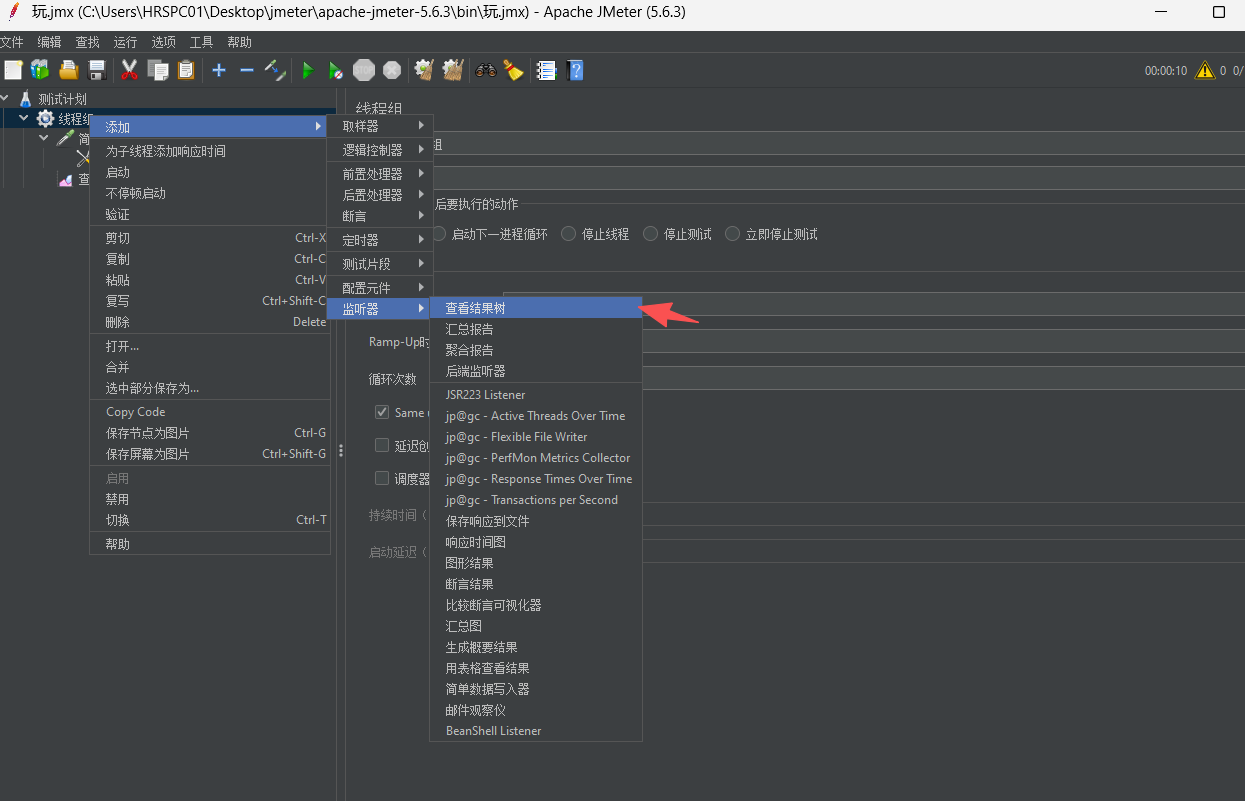 在线程组里配置相应参数(多少并发、在多长时间启动、持续多久等),然后开跑,在结果树中就能看到结果