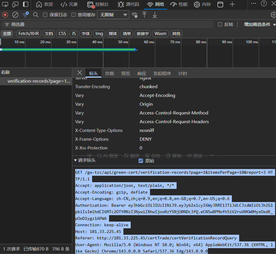 例如查询 点击查询 开发者工具中有对应的网络请求,点击目标请求 复制request url
