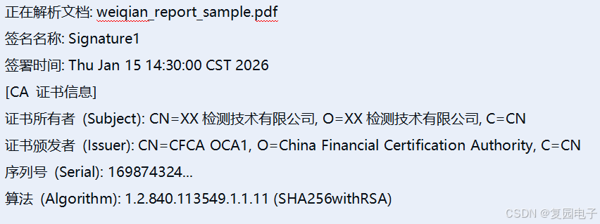 运行上述代码,如果是一份合规的微签报告,控制台将输出类似如下信息: