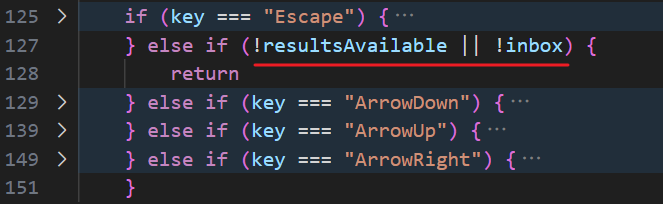 OK,接下来如果没有搜索结果,或者焦点不在搜索区域,就直接退出,防止在无关区域按方向键还能触发搜索导航